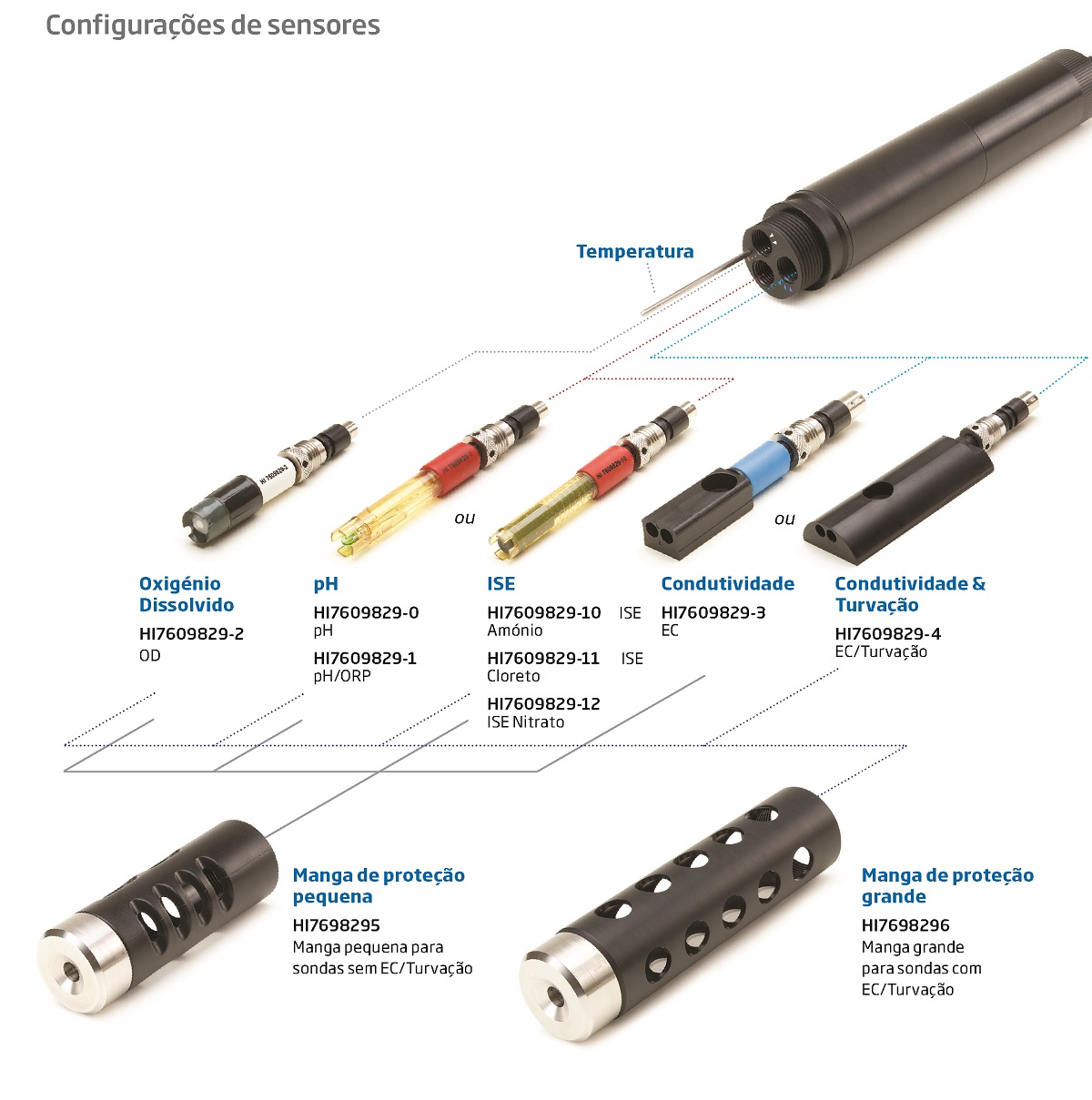 Sonda de pH/ISE/EC/OD/turvação (sem manga de proteção, sem sensores) para HI9829, cabo de 4 m