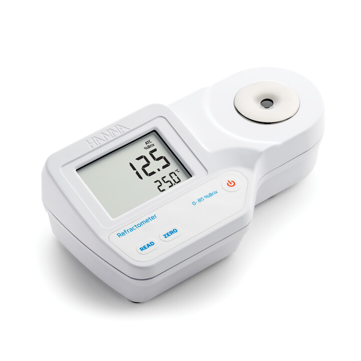 A medição do índice de refração é simples e rápida e fornece ao operador um método padrão aceitável para a determinação do açúcar. As amostras são medidas após uma simples calibração com água destilada ou desionizada.