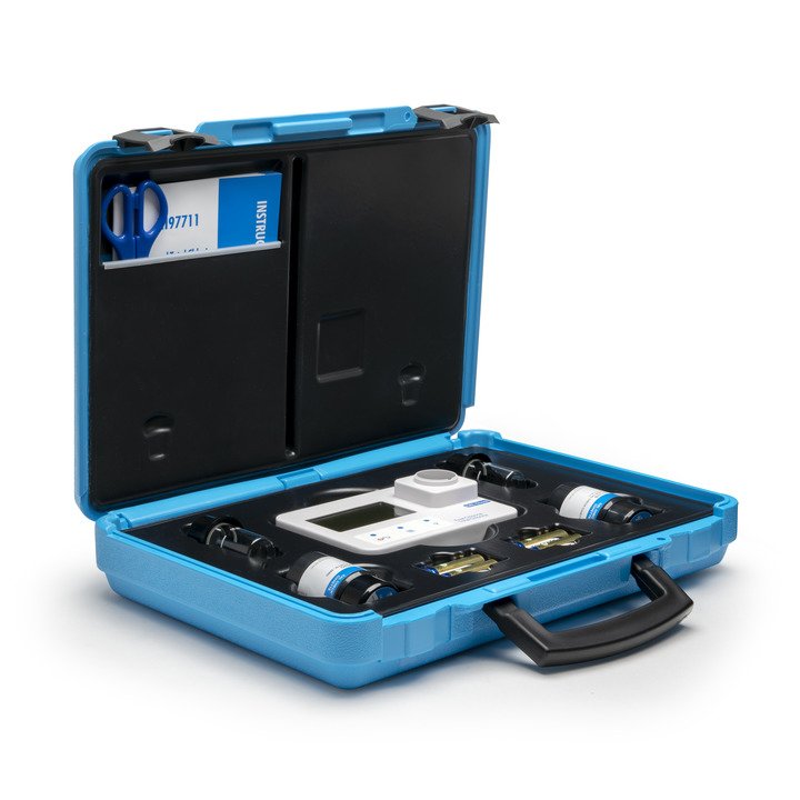 O estojo HI97701C é fornecido com padrões CAL Check, cuvetes (2), tampas (2), vedante plástico para cuvete, tesouras (2), pano de limpeza para cuvetes, pilhas de 1,5V AA (3), manual de instruções e certificado de qualidade do instrumento.