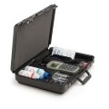 O HI98190 é fornecido com todos os acessórios necessários para realizar medições de pH/temperatura, tudo numa mala resistente.