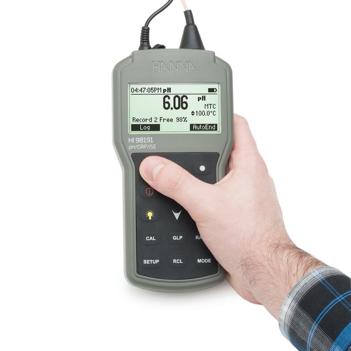 O HI98191 é um medidor de pH/ORP/ISE portátil e robusto com as características e o alto desempenho dos equipamentos de bancada.
