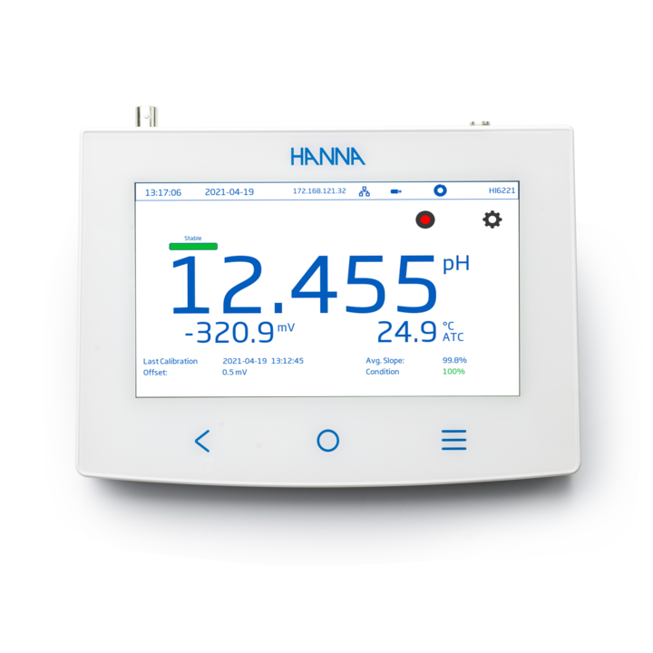 - Calibração de pH de 5 pontos com reconhecimento automático para padrões standard (Hanna e NIST)