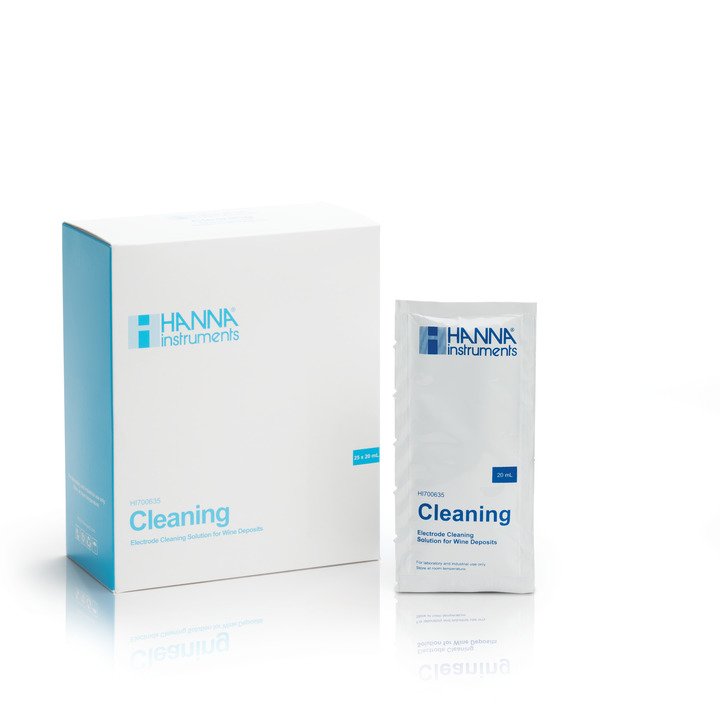 HI700635P | Saquetas de solução de limpeza para resíduos de vinho em elétrodos de pH, 25 x 20 ml