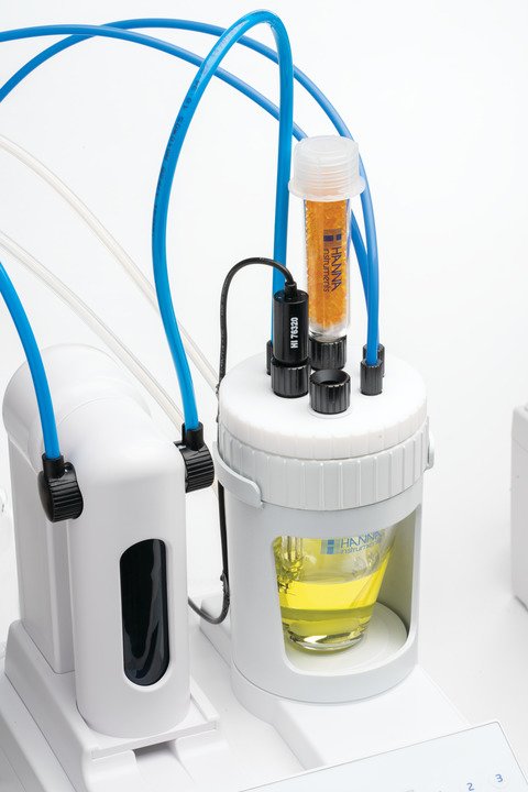 · Célula de titulação cónica para facilitar a mistura numa