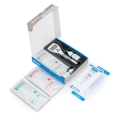 O HI981036 é fornecido com elétrodo de pH para carne, saqueta de solução padrão pH 4,01 HI70004 (2), saqueta de solução padrão pH 7,01 HI70007 (2), saqueta de solução de limpeza para óleos e gorduras de carne HI700630 (2), solução de armazenamento HI9072 (13 ml), solução de enchimento HI9071, manual de instruções e certificado de qualidade do instrumento