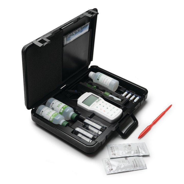 O HI98168 é fornecido com o elétrodo de pH com corpo em vidro HI12923, solução padrão pH 4,01 HI7004M (230 ml), solução padrão pH 7,01 HI7007M (230 ml), solução de preparação de amostra de solo HI7051M (230 ml). saqueta de solução de limpeza para elétrodos para resíduos de solo HI700663 (1), saqueta de solução de limpeza para elétrodos para resíduos de húmus HI700664 (1), perfurador de solo HI721319 (1), copo plástico de 100 ml (2), pilhas de 1,5V AA (4), software para PC HI92000, cabo micro USB HI920015, manual de instruções, certificado de qualidade do instrumento e mala rígida para transporte HI720161.